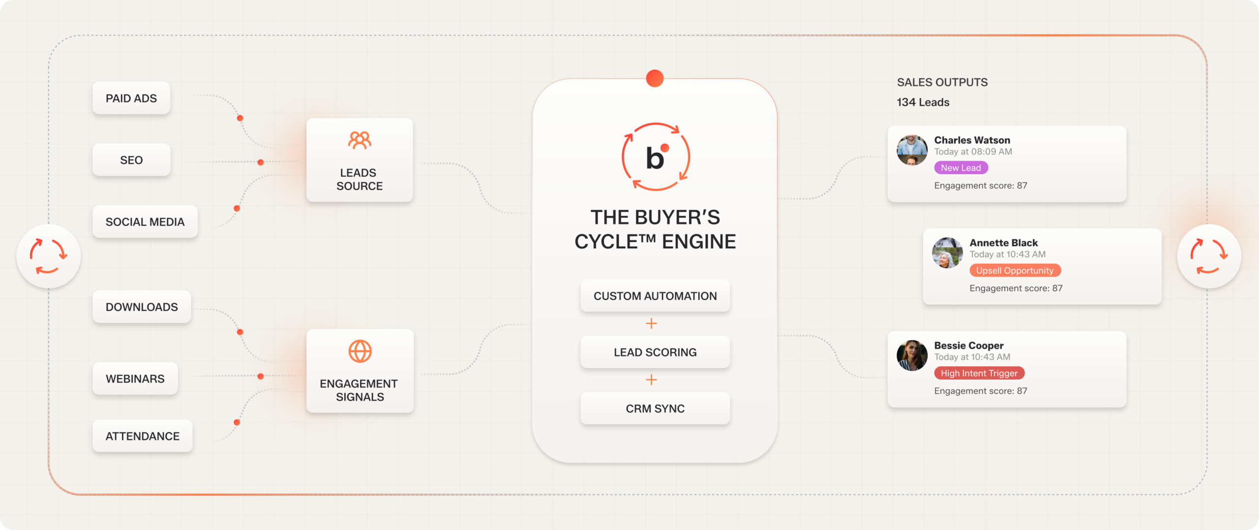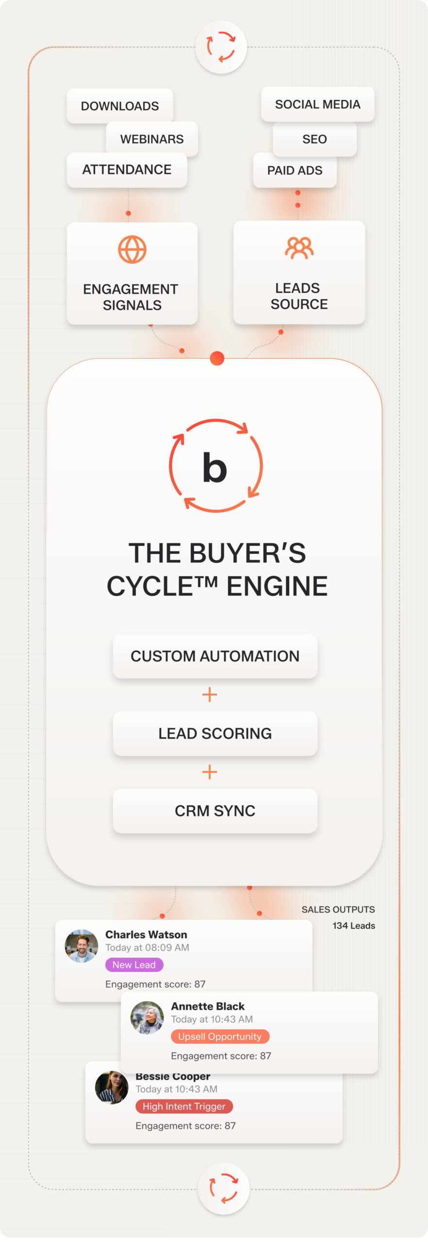 The Buyer’s Cycle™ connects every stage of your customer journey – from awareness to close – inside one automated loop.